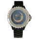 Um relógio de Nova Idade de uma mulher. Azul e amarelos vibrantes bonito e uma lua e estrelas.