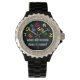 Um relógio conceitual com números de cores confusos e a pergunta "que diferença faz?" - você pode editar o design e mudar a cor de fundo preto