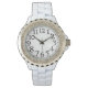 Relógio de pulso ultra-feminino, com uma banda branca, e um discagem com rochas. O estilo deste relógio pode ser mudado de acordo com as suas necessidades. O fundo deste relógio tem grandes números, que é uma imagem transparente, permitindo que você carregue sua própria imagem no plano de fundo, se quiser.