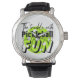 Este relógio de piquenique captura com humor o sentimento de que o prazer inicial de jogar piquenique eventualmente dá lugar à diversão viciante, enfatizando a natureza irresistível do esporte. Adicione qualquer texto ou mesmo um nome ao verso.