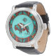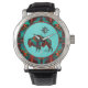 Este é um Único "Um dos Tipos" do Sul do Buffalo Watch! Ele apresenta uma Silhueta de Búfalo do Sudoeste e um Sol em um Fundo Turquesa... cercado por uma Turquesa, Laranja e Borda Negra! Design De Arte Original Pelo Artista Kerry Miller.