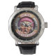 This humorous wall clock features a cartoon elderly woman with a shocked and exasperated expression, peeking through a porthole-like frame. She wears a pink knitted hat and large glasses, with banners above and below proclaiming "OH NO!" and "NOT YOU AGAIN". The design captures a relatable moment of humorous frustration.