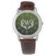 Silhueta de veados brancos sobre um fundo verde de gradiente da floresta e sua escolha de letra monográfica em branco.