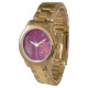 Make a bold statement with the Edna Stewart Signature Design Oversized Gold Bracelet Watch, exclusively available at the ES 1963 online store. This unisex timepiece features a stunning watch face adorned with a beautifully illustrated pheasant bird surrounded by delicate flowers, rendered in captivating mauve and a vibrant array of multi-colored accents. The artistry of Edna Stewart brings elegance and personality to your wrist, turning every glance into an appreciation of fine design.