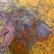 Uma design de arte abstrato incomum e colorida de uma ovelha.