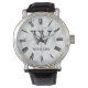 Crie seu próprio relógio personalizado com seu nome personalizado em um fundo elegante de mármore branco.