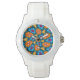 Relógio Padrão de Flores Azul e Laranja
