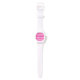 Um bonito relógio de pulso branco, com um padrão islâmico de formas geométricas decorativas em cor-de-rosa-doce e branco.
