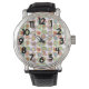 Este relógio masculino tem um médio de moderno século design de paisagens desbotadas colocadas sobre si em cores retrorreflectoras com uma camada com padrão atômico.