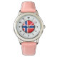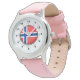 Relógio Patinho rosa de couro rosa, com bandeira noruegues