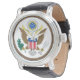 Show your American pride every time you check the time with this striking men's wristwatch featuring the official obverse of the Great Seal of the United States – the majestic bald eagle, shield with stars and stripes, olive branch, arrows, and the motto "E Pluribus Unum." Set on a clean white dial with classic silver-tone case and genuine black leather strap, this high-quality quartz watch offers timeless style and precise timekeeping. Perfect for patriots, veterans, history enthusiasts, government workers, or as a unique gift for Fourth of July, Inauguration Day, Veterans Day, or everyday national pride. A sophisticated accessory that combines historical symbolism with elegant everyday wear.