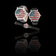 Vintage, American, USA Flag, com listras vermelhas e brancas, azul com estrelas brancas. Adicione um nome usando o belo modelo de monograma de script.