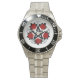 Pentagrama preto com padrão, decorado com floração, rosas vermelhas com folhas em fundo branco. Tatuagem.