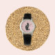 Um relógio bonito com um design gráfico original do Mango Moon Studio. O rosto do relógio exibe uma silhueta de gato preto elegante contra um fundo rosa pálido, criando um encantador contraste que adiciona um toque de capricho ao seu pulso.