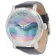 Relógio Personalizada Aquarela Azul Onda Oceânica Foto com