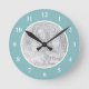 Relógio personalizado de fotos com sua foto. Quadro de borda redonda turquesa com números brancos. Design elegante para a sua família ou para a sua imagem de bebê portret. Bela ideia de presente para avós, mãe, avó, avô, etc. Adicione fotos de seus filhos ou netos, ou seja, neto recém-nascido ou neta.