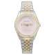 Celebrate a remarkable milestone with this exquisite Personalized 60th Birthday Watch for women. This elegant timepiece features a chic design in soft blush pink, perfectly accented with luxurious gold-look typography and a stylish two-tone silver and gold bracelet.