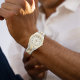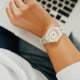 Crafted with a sophisticated silver-and-gold bracelet, pearl-marble dial, and classic Roman numerals, this unisex watch pairs effortlessly with everyday wear or formal attire. Its refined balance of tradition and modernity makes it ideal for both men and women.