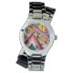 Este relógio feminino tem uma design retrô de 1970 é feito de camadas de cabeça para baixo Vs em três lugares todos em cores retrorreflectoras.