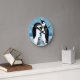 Arte em relógios de parede com uma família de pinguins imperadores.