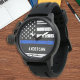 Thin Blue Line Police Watch - design de bandeira americana em cores de bandeira policial, design angustiado. É um belo presente para a sua polícia ou polícia favorita. presente de aposentadoria ou presente de apreciação da polícia excelente. Personalize com o nome. COPYRIGHT © 2020 Judy Burrows, Black Dog Art - Todos Os Direitos Reservados. Controle Personalizado de Polícia de Bandeira Americana de Linha Azul