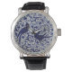 Imagem de uma antiga placa de majólica da Itália decorada no celebrado estilo floral de Romã em azul, branco e dourado que remonta à Era do Renascimento. Um presente perfeito e elegante para casamento, aniversário, dia dos namorados.