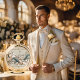 Honre o noivo com a elegância eterno do presente para o Groom Dourado Pocket Watch da coleção de Elegância Costeira Pérola. Apresentando um design IA digitalmente editado com padrões intrincados em um acabamento de ouro polido, este relógio de bolso é uma manutenção sofisticada para o dia especial. Inspirado pelo encanto costeiro, acrescenta um toque de estilo refinado à roupa do noivo.