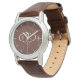Mulheres personalizadas assistem com corações de amor e iniciais de nomes. Ideia de presente de couro para o terceiro aniversário.