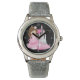 Aqui está um relógio bonito que qualquer garotinha amará! Ela apresenta uma princesa em um vestido cor-de-rosa, com seu castelo rosa e prateado no fundo. A princesa segura uma varinha estelar rosa. Números de prata facilitam a leitura do relógio. Tudo é colocado sobre um fundo negro. *Gráficos por PrettyGrafik Design.