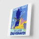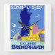Vintage, poster de 1927, comemorando o centenário de Bremerhaven, na Alemanha, fundada em 1827. A design retrata uma visão de porto da cidade e o farol de Roter Sand ao fundo.