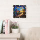 Este relógio de parede cativante mostra Jesus, esfolado em cores fluentes, caminhando um caminho mosaico em direção a um horizonte radiante com lua crescente e sol. O céu vibrante e manchado, árvores e água criam um pano de fundo místico. A mensagem profunda, "A fé está confiando no plano de Deus", é exibida de forma proeminente. Este único relógio serve como um lembrete constante e colorido da providência divina, da jornada espiritual, e da confiança inabalável no perfeito design de Deus.