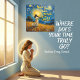 Uma representação visualmente impressionante de um livro sagrado aberto, irradiando luz de suas páginas, colocada contra um pano de fundo de uma antiga e brilhante autoestrada que se assemelha a uma janela de vidro manchado vibrante. Grandes cadeias estão no primeiro plano, sublinhando a mensagem libertadora: "A Verdade vos libertará". Esta peça ilustra muito bem como abraçar a verdade autêntica leva à libertação e a um caminho claro para a frente, ultrapassando o confinamento espiritual.