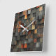 Um relógio de parede com caixas quadradas de abstrato. Esta é uma design plana feita para parecer tridimensional.