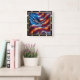 Este relógio de parede exclusivo apresenta um desenho abstrato cativante da bandeira americana, com elementos vermelhos, brancos e azuis vibrantes. Uma verdadeira obra de arte moderna, ela serve como um relógio decorativo simbólico e patriótico para qualquer casa ou escritório. Suas cores ousadas e estilo contemporâneo fazem dele um pedaço de tempo na moda e atraente, incorporando orgulho nacional