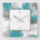 Relógio Quadrado Abstrato de Cinza Teal Brushstrokes