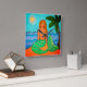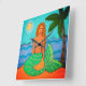 Minha pintura colorido de abstrato de uma sereia debaixo de uma palmeira faz deste adorável relógio de parede uma obra de arte decorativa!