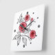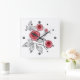 Relógio Quadrado Abstrato moderno rosa flores cinza vermelho branco