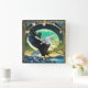 Relógio Quadrado Águia Empoleirada em Rocha com Fundo Luar