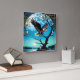 Relógio Quadrado Águia Empoleirada na ramificação da árvore sob lua