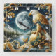 Relógio Quadrado Águia Empoleirada na ramificação sob lua cheia