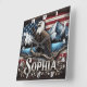 Relógio Quadrado Águia na ramificação com montanhas e sinalizador