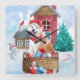 Relógio Quadrado Akita Dog Na Casa De Cachorro De Neve