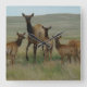 Alces da vaca e pulso de disparo das vitelas. Os alces da vaca são muito protetores de seus jovens e babysit frequentemente para outras vacas quando forem ocupados alimentar. Esta vaca nova olhava estas vitelas quando suas mães pastaram em uma parte inferior próxima do slough.