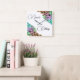 Um relógio quadrado de na moda de flor de aquarela com a legenda "Algodão da Nana" em um simples pano de fundo branco criando vibrações cômicas simplistas. Pode ser personalizado com seu próprio texto ou nome ou mantido como está com a frase Algodão da Nana.