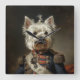 Um retrato oficial de uma pintura a óleo de um terrier da West Highland vestido num uniforme militarista vitoriano do renascimento do século 18 como Napoleão. Cachorro branco-branco