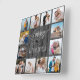 Relógio de fotos com citação feliz e 12 de suas fotos favoritas de família e amigos. O modelo de foto está configurado para você criar sua própria colagem de fotos no estilo de grade para enquadrar a citação dizendo "amar a vida com você". O design é escrito em uma escrita nítida e uma tipografia de fontes magras com uma cinza e fundo de efeito de madeira preta. Adicione suas fotos trabalhando no sentido horário a partir da parte superior esquerda e suas fotos serão exibidas automaticamente no formato quadrado / instagrama. Um lindo presente de fotos único para casais, amigos e família.