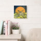 Uma paisagem colorida elegante com sol vermelho, ondas do mar em cores vibrantes, pretas, brancas reelaboradas de uma antiga miniatura japonesa. Amaterasu é parte do ciclo do mito japonês e também uma grande divindade da religião Shinto. Ela é a deusa do sol, mas também do universo. O nome Amaterasu derivado de Amateru significava "brilhar no céu." Amaterasu-ōmikami significa "o excelente August kami (deus) que brilha no céu".Para Amaterasu também é creditado que inventou o cultivo do arroz e do trigo, o uso de bichos-da-seda e tecelagem com o tear.