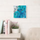 Relógio Quadrado Aquarela Personalizada Azul e Branco Customizada