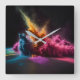 Relógio Quadrado Arco-Íris Explosão em Pó Preto