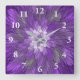 Relógio Quadrado Arte Fractal Abstrato de Flor Roxo Psicodélico